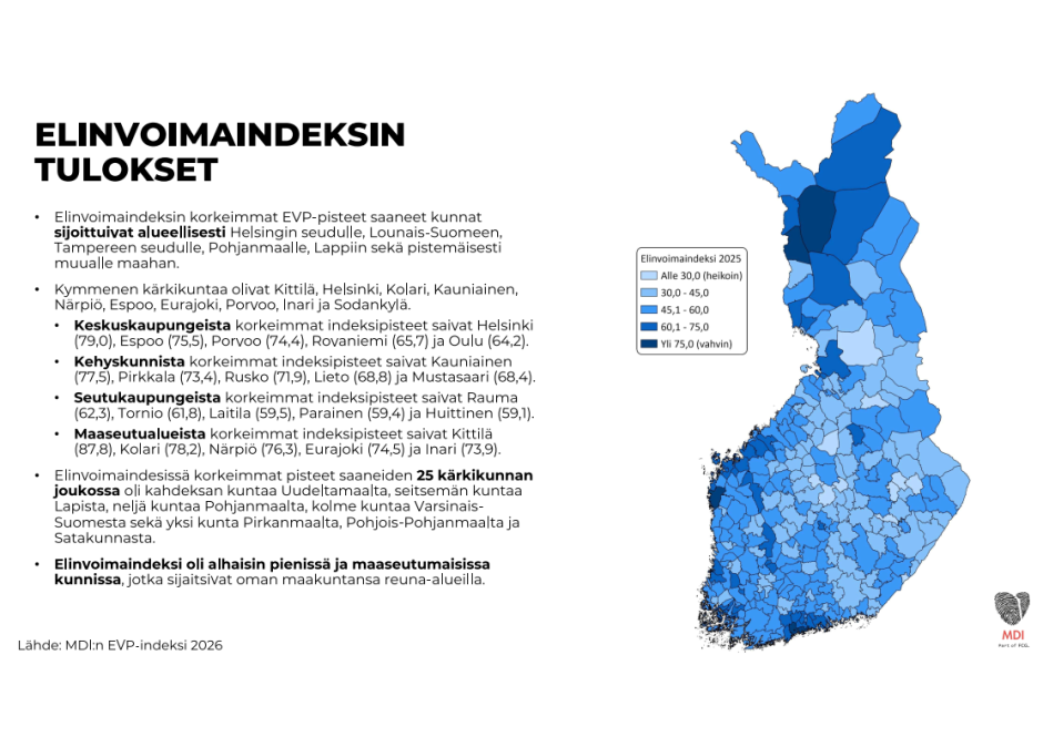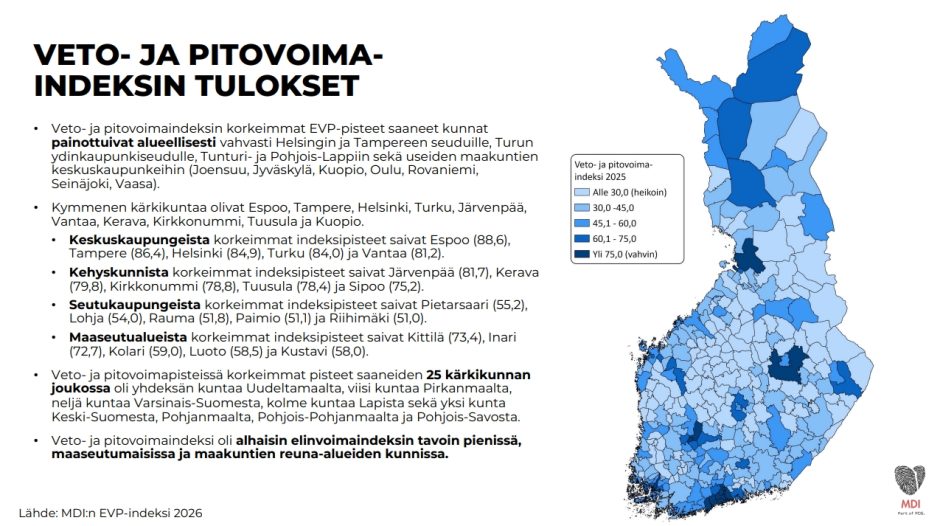 Vuonna 2023 ensimmäisen kerran julkaistu Elinvoima, vetovoima ja pitovoima -indeksi on jälleen päivitetty.