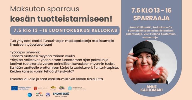 Työpajan vetäjä: Anne Kalliomäki, Tarinakone Oy/ Suomen johtava tarinallistamisen asiantuntija, Visit Finland Akatemian valmentaja.